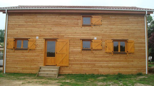 - exterior: Pine-wood cladding treated autoclave and painted ;
