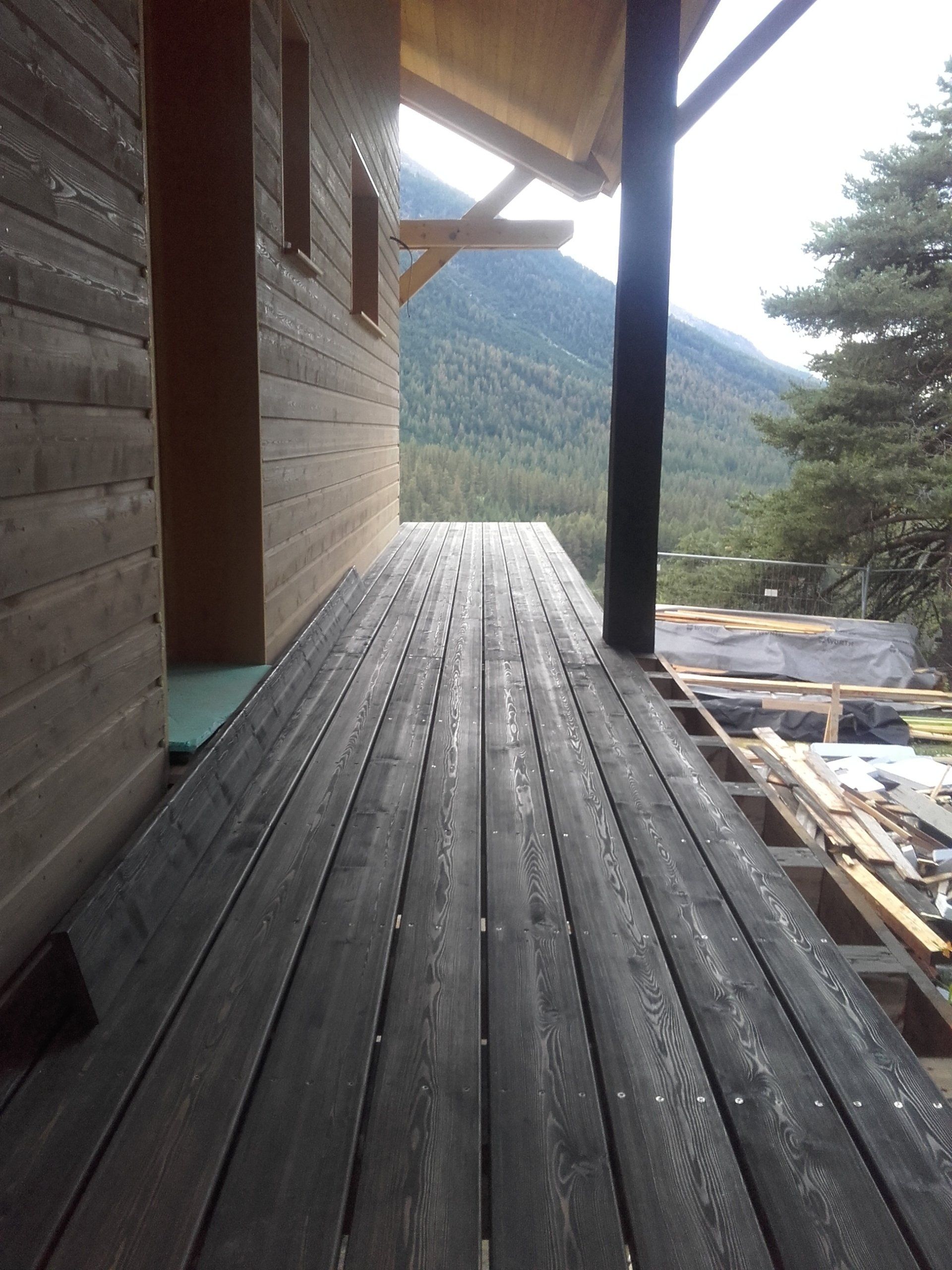 - extérieur: Bardage Clin en Mélèze de Sibérie ;